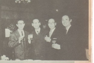 | 京都青年俳優部のカクテルパーティで、本誌の新旧同人の交歓スナップ(右から東、八尋、依田、市川の四氏) |