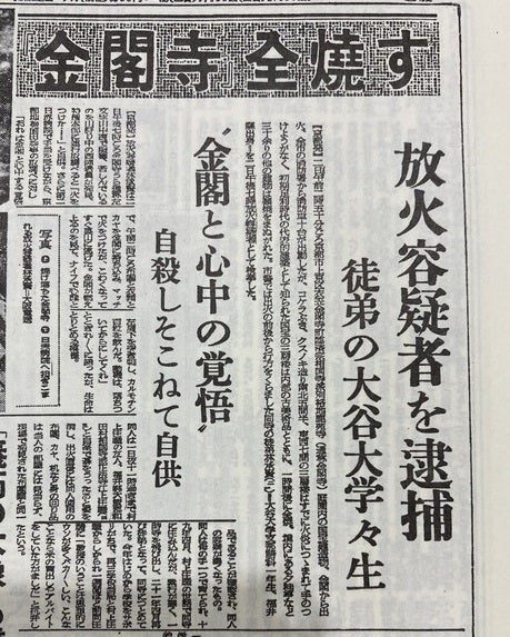 犯行の動機が謎めいていたことから、本事件を題材として、三島由紀夫「金閣寺」、水上勉「五番町夕霧楼」「金閣寺」 などの作品が書かれた。金閣は、1952(昭和27)年から3ヶ年計画で再建工事が始められ、1955(昭和30)年10月10日、落慶供養が営まれている。(Wikipedia)