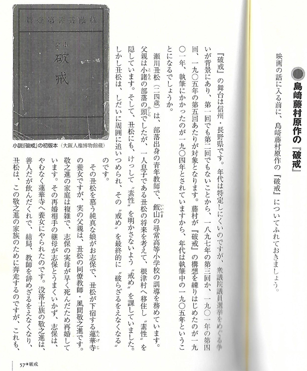 部落問題をテーマにした『破戒』『橋のない川』をはじめ、日本映画のなかで被差別の人びと・生活・仕事などが、どのように描かれているかを中世から現代までの歴史から綴る読み物。ドキュメンタリー映画や学習ビデオも紹介する。(中尾健次 解放出版社 06/30/06)。
