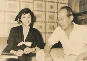 千田是也と木暮実千代に演技をつける溝口監督(後向き)