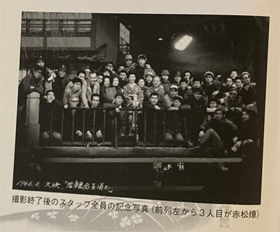 最後の作品(昭和44年2月22日、『博徒一代血祭り不動』)も一緒、「赤松さん来年明けたら、もう一度入院して体を立て直してきます。秋頃には会いましょう。そしてもりもりやりますよ」と云って別れたのが、此の世の別れでした。「テアトロ 鏑矢の旗上る」も協力する覚悟でいたのに・・・あゝ何と云う悲しい事だ。(「市川雷蔵追悼集」に記した赤松のメモより)
