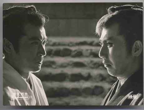 最後の共演作品となった「眠狂四郎無頼剣」は、私も好きな出演作の一つだが、私の演った「愛染」と名乗る浪人なども、その好例だろう。これは脚本の伊藤(大輔)先生が最初から私というキャラクターを想定して書かれたのではないかと思うほどで、しかも監督の三隅(研次)さんがうまく使ってくれて、雷蔵さんと大変興味ある対比となった。すなわち、愛染は狂四郎とどことなく似ていて、そのくせ考え方も生き方も全く違っている。お互いに共感するところがあり、むしろ一種の親近感さえ湧いてくるほどなのに、思想なり主義なりの相異から最後には大屋根の上の対決、しかも同じ円月殺法で−時代劇ならではの面白味を一杯盛りこんで、しかも狂四郎必ずしも善でないのと同様、愛染もまた必ずしも悪でないというところ、人間味ゆたかな時代劇となったのである。
