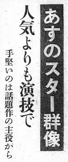 二枚目として登場して、二年たっても人気が出ないいようなら、スターとしての第一の資格を失うも同然といわれるが、ちかごろ新進として人気を集め、芸風演技の確かさを示しはじめた新人たちをひろいあげ、明日のスター群像を描いてみよう。