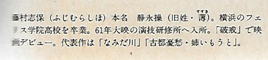 和久本 その時、藤村さんはずいぶん泣かれたとか。『新選組始末記』の山崎(雷蔵)を愛した志満の慟哭を観るたびに、それを思い出します。