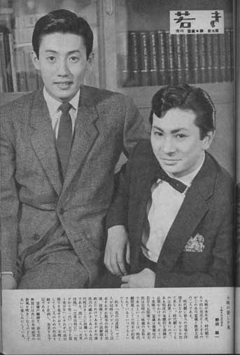昨年「花の白虎隊」で二人が同時にデビューして以来それぞれ数本の作品に出演、俳優としての試験期を終えたわけであるが、その演技力の確かさとあふれる近代性はまことに得難いものである。既に二人は「次男坊鴉」「次男坊判官」「花ざかり男一代」「天下を狙う美少年」にそれぞれ成長振りを見せており、大映としても二人のための作品を続々と企画し、発表する予定である。