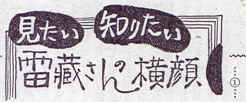 大阪スタイルボンボンでテンシンランマン、おこる時は人一倍どなりつける彼だが、人一倍人情家で、中々ユーモラスな若様だ。彼と一番多く一緒に仕事をしている故か、彼も又、僕の事を一番良く知っていて呉れる。例えば、一緒の仕事で彼の前で失敗すると、「成年君、今日は少しアガリ気味ですな、少し落着いたらどうです」なんてキサクに云って呉れる雷ちゃん。僕から見れば細い若様も中々のファイトマンで勉強家、それでイバラないで、どんな人に話しかけられても、気取らないで遠慮なく話す雷ちゃんこそ、僕にとって時代劇映画の先輩であり、良き忠告者であり、悪友?でありムード音楽ファン、8ミリシネマの相棒であり、二人が会えば話しがつきない。それ位話題の豊富な雷ちゃんだ。