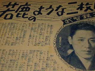 雷蔵君はそのころはまだ市川莚蔵という名でした。彼のお父さんは、市川九団次という、敵役専門の老優で、従ってあまりパッとした存在ではありませんでした。そんな役者の子に、わずか十七かそこいらの年齢で十郎のようなむつかしい役が、立派に読める人がいるということは、何か私には奇蹟のように思えました。その朗読会は満員で、ろくに雷蔵君の顔も見えなかったのですが、莚蔵という名前は、その時以来強く私の脳裡にきざまれて印象づけられたのでした。