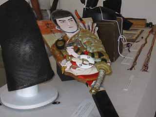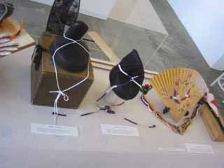 ケースの中には高津装飾美術株式会社からお借りした貴重な映画用小道具+お宝羽子板
