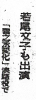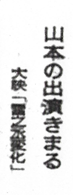 本年度の大映との契約本数を消化したことを理由に、大映の正月作品への出演を断わった山本富士子(大映)は、長谷川一夫三百本記念映画『雪之丞変化』(監督市川崑)への出演を渋っていたが、このほど、会社側との話し合いがつき、出ることになった。 『雪之丞変化』は京都撮影所で、すでにクランク・インしているが、山本は女盗賊“お初”の役で、現在出演中の東京映画『憂愁平野』が終り次第参加する。(日スポ・東京版11/16/62) |