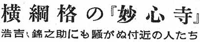 それに仏殿法堂の重厚な堂宇がならび、禅宗伽藍としては規模の雄大さにおいて大徳寺と並び称されている。それだけに果たし状つきつけての決闘場としては尾上松之助の活動写真時代からトーキー初期、さらに天然色と飛躍した現在まで、ここにカメラをすえてロケされること何百遍にものぼり、近所のファンもロケなれして浩吉、錦之助、千代之介ら人気者が撮影にきてもあわててかけつけるようなこともない。いかにも時代劇のメッカらしい。