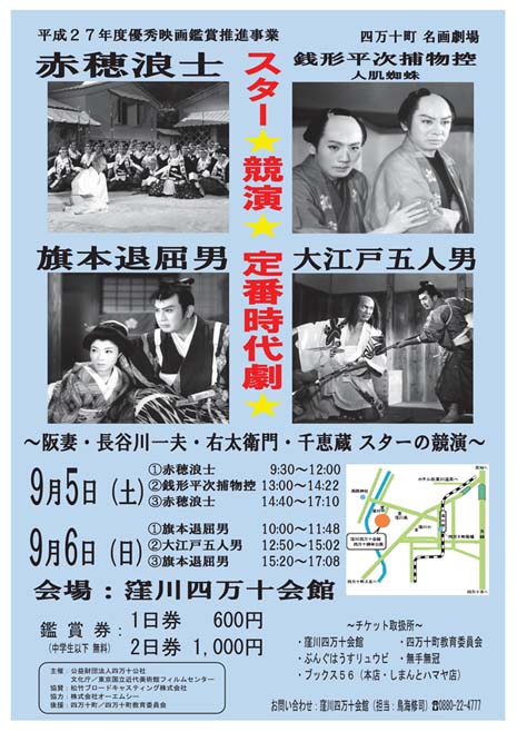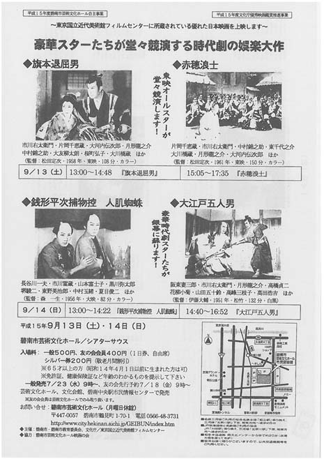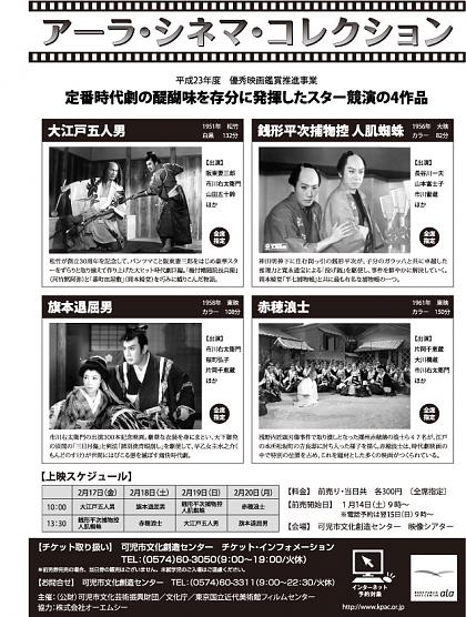 市川右太衛門、大川橋蔵、片岡千恵蔵 |